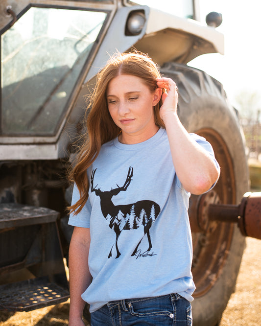 Vendor:Westrek HuntingRegular price From $24.99 USDRegular priceUnit price / perSale price From $24.99 USDLight Blue Forest Silhouette Shirt