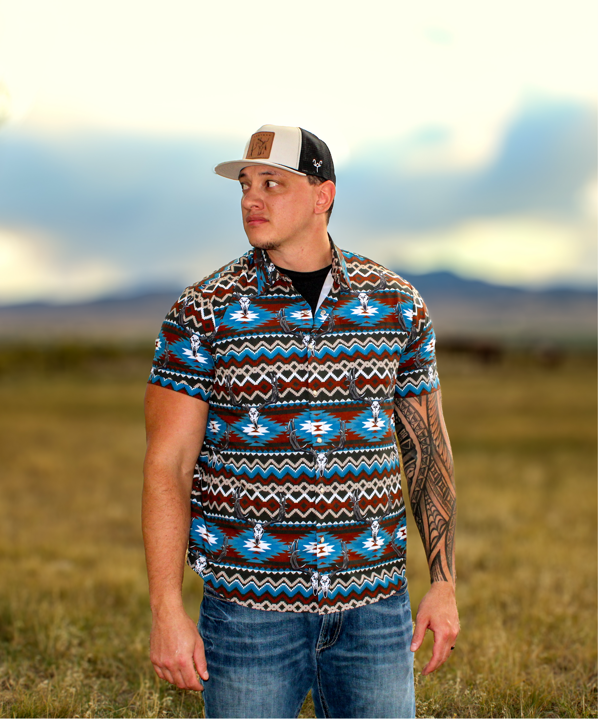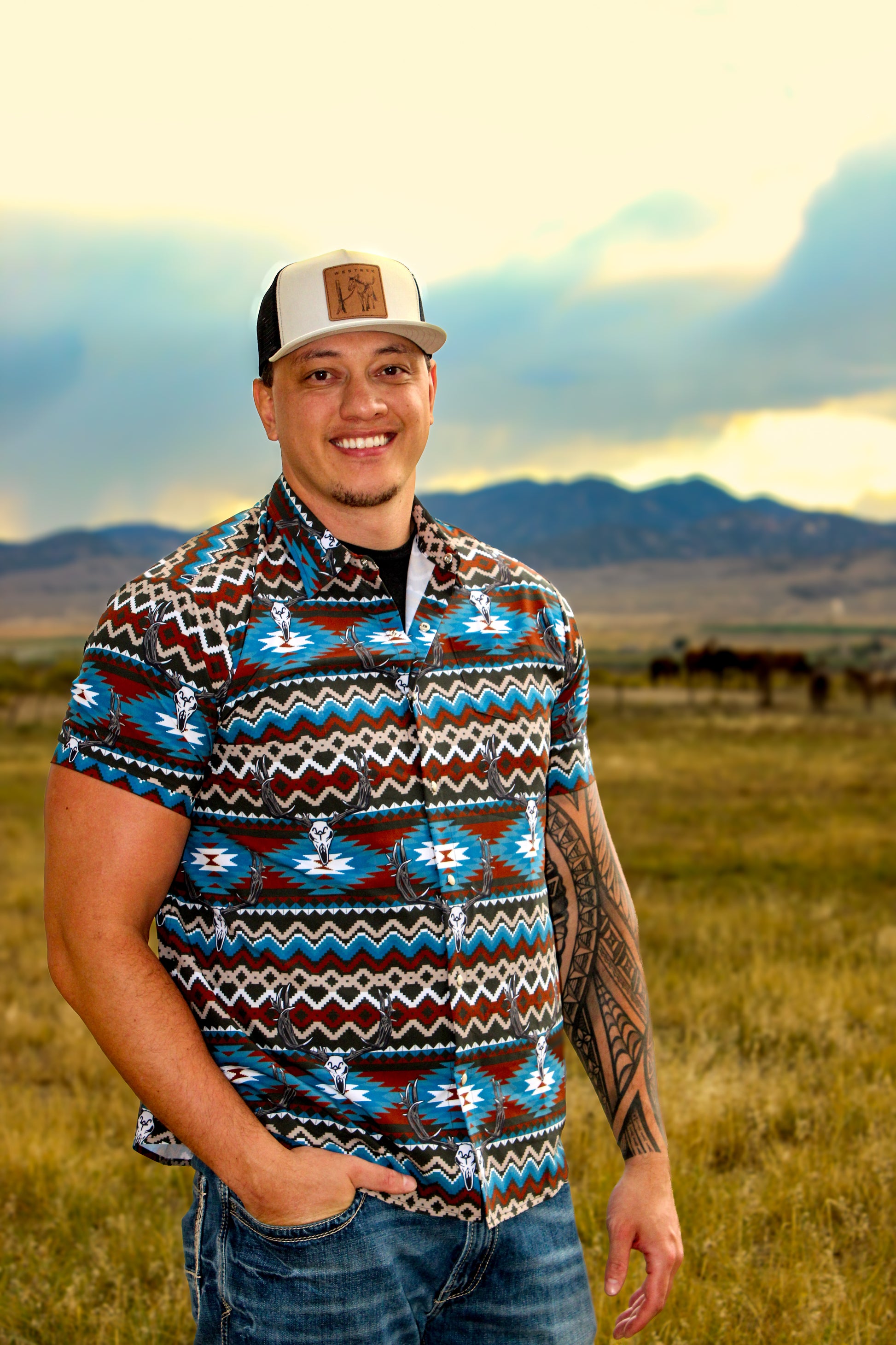 The most cool and comfortable pearly snap button up you’ll find! 93% polyester 7% spandex so it won’t shrink and has a nice stretch to fit just right! Features western pearl snaps for that classic cowboy look. We also added a couple inches of length to the bottom so it will stay tucked in or keep it untucked and it’ll fit just right! Logos feature Hand-drawn Westrek logos that embrace the traditions of the West!