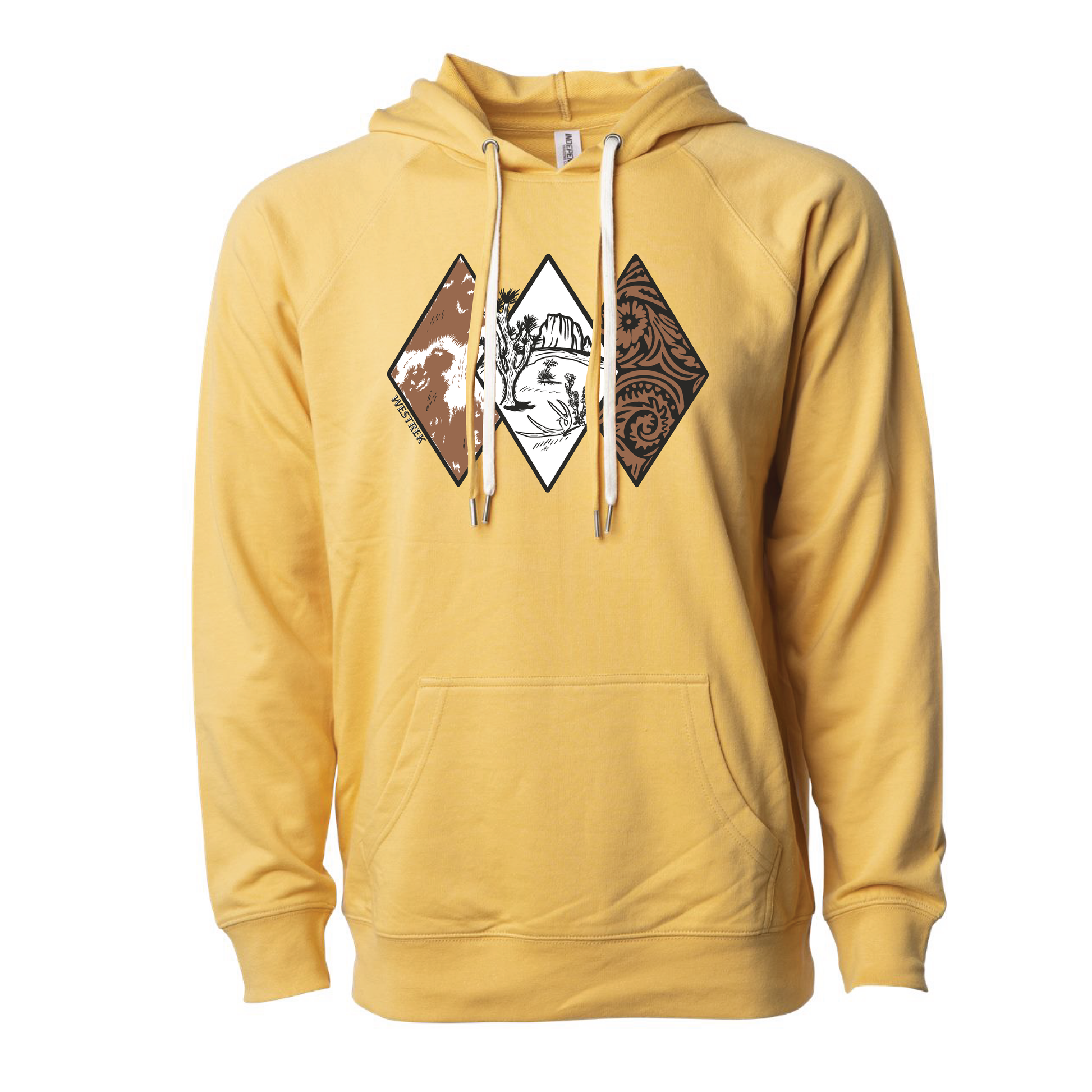 Gold hoodie with stylish cowhide design.