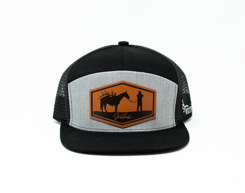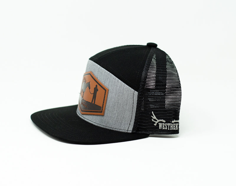 Leather hexagon patch, horse/elk antler landscape silhouette.